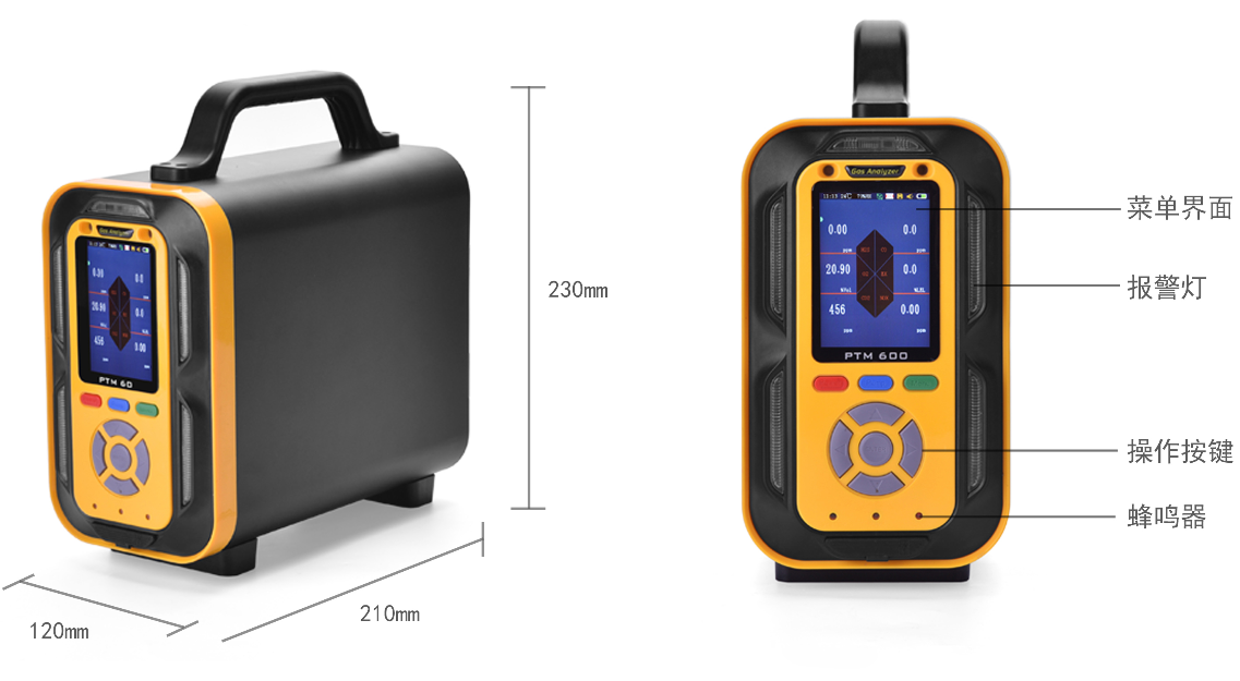 ●3.5英寸彩色觸摸屏顯示,實(shí)時(shí)濃度、報(bào)警、時(shí)間、溫度、存儲(chǔ)、通信、電量、充電狀態(tài)等信息。